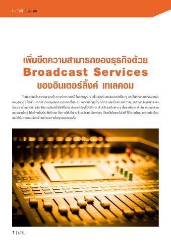 และขนาดใหญ่ ได้อย่างเต็มประสิทธิภาพ ซึ่งการให้บริการ Broadcast Services เป็นหนึ่งในเทคโนโลยี ที่มีการพัฒนาอย่างต่อเนื่อง